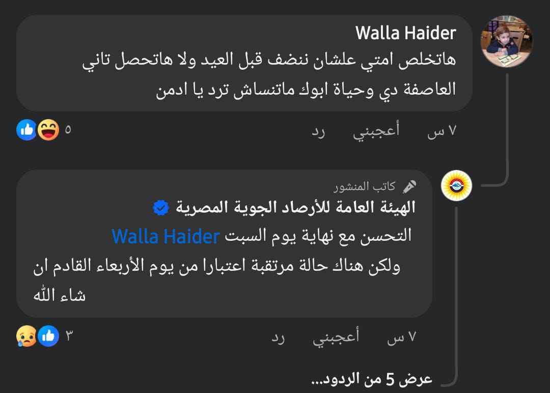 وجاء توضيح الهيئة العامة للأرصاد الجوية في ردودها على المواطنين خلال الصور التالية: