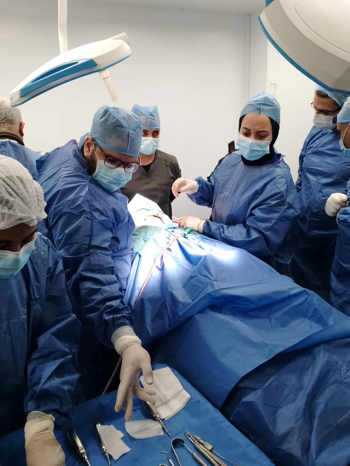 الفريق الطبي المشارك في الجراحة ضم كلًا من الدكتور أحمد بهاء، استشاري جراحة الوجه والفكين، والدكتور حسام علوان، استشاري جراحة الوجه والفكين، والدكتور ياسر فتحي، استشاري التخدير، إلى جانب فريق التمريض الذي ضم: نورهان سيف، ومنار محمد، وريهام رجب، وروان محمد، وإيمان يسري، واتمار شكر، وسناء ربيع، وأسماء حسين، وأسماء جابر، حيث عمل الجميع بروح الفريق الواحد لضمان نجاح العملية وفق أعلى معايير الجودة الطبية.