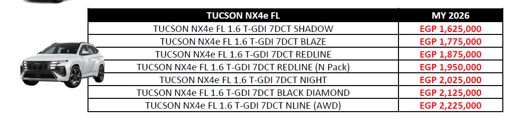 زيادة أسعار سيارة هيونداي توسان 2026 بقيمة تصل لـ 75 ألف جنيه