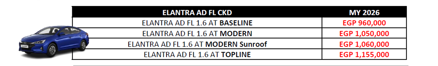 أسعار سيارة هيونداي إلنترا AD موديل 2026