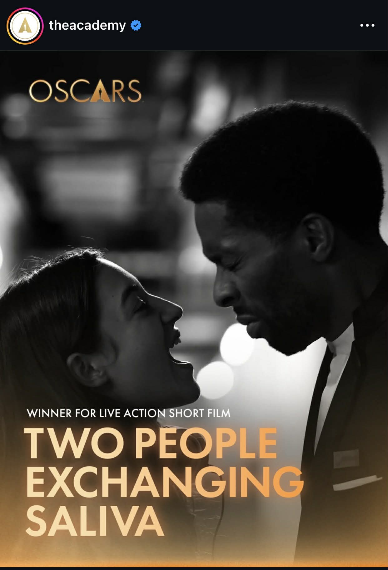 وفي فئات الأفلام القصيرة، تقاسم فيلمي The Singers وTwo People Exchanging Saliva، جائزتي أفضل فيلم قصير بتقنية التمثيل الحي.