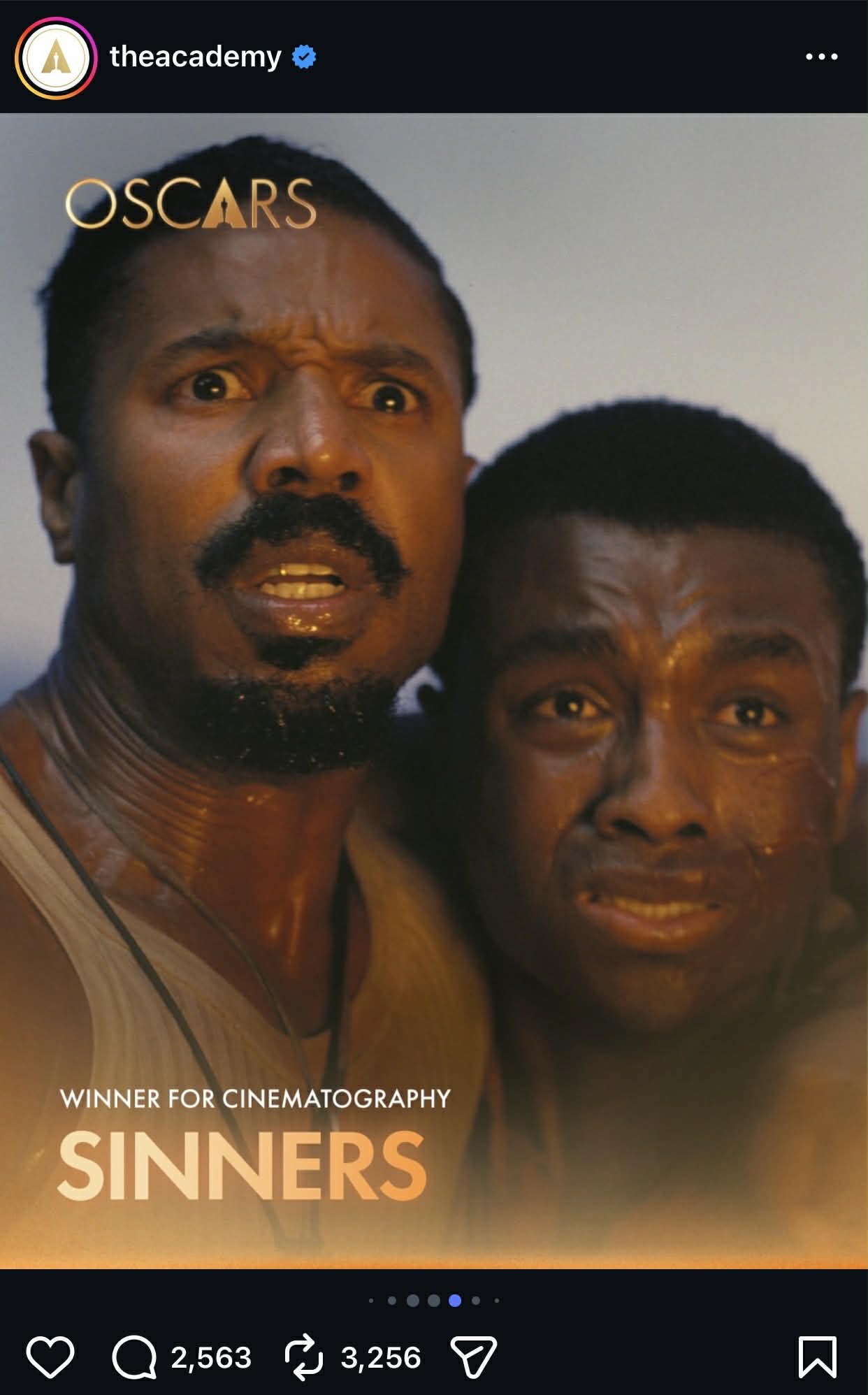 كما حصد فيلم Sinners، عدة جوائز أخرى، من بينها أفضل تصوير سينمائي، وأفضل موسيقى تصويرية أصلية، بالإضافة إلى جائزة أفضل سيناريو أصلي.
