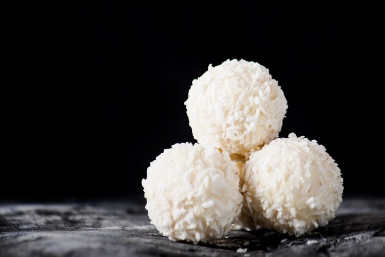 - اخلطي جوز الهند مع الحليب المكثف حتى تتكون عجينة قابلة للتشكيل.