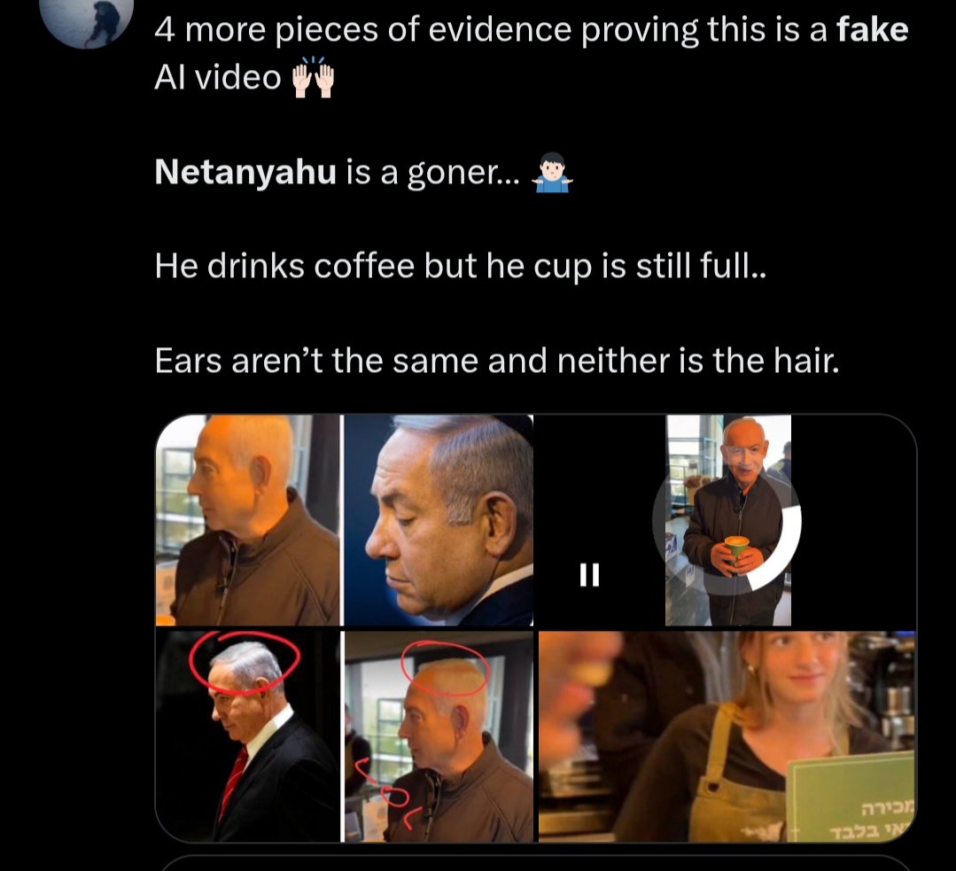 بينما تؤكد لغة جسد نتنياهو والصور المنشورة على صفحة الكافيه واقعية الفيديو، يضعنا خبراء التقنية أمام حقيقة، وهي أننا دخلنا عصرًا لم يعد فيه التصوير دليلاً كافيًا على الحدوث، ما يعكس حجم القلق من توظيف الذكاء الاصطناعي في المشهد السياسي.