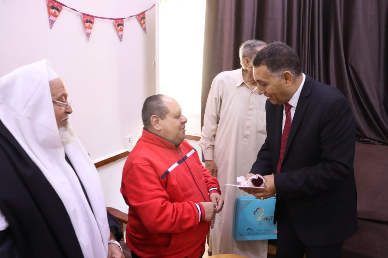 محافظ القليوبية يشارك نزلاء دار المسنين ببنها فرحة عيد الفطر المبارك