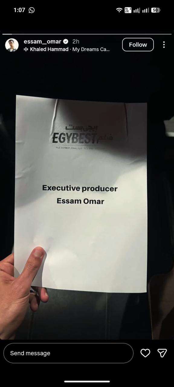 وتابع: “حقيقي حاجة تفرح أن يكون لدينا فنان بمثل هذا الوعي، وتلك الموهبة، ولديه هذه الرغبة للمساهمة في نجاح ودعم زملائه الموهوبين.. عصام عمر شكرًا على الفيلم البديع”.