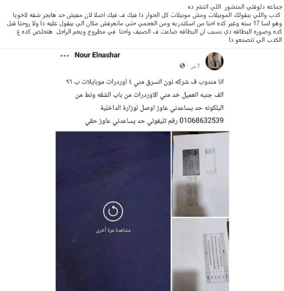 وفي المقابل، نشر أحد الأشخاص الذي يدعى عمرو خالد، منشورًا عبر فيسبوك، مدعيًا فيه أنه شقيق المتهم بسرقة الهواتف. ونفى فيه صحة ما تم تداوله، واصفًا الاتهامات بأنها غير صحيحة ومفبركة، على حد قوله.