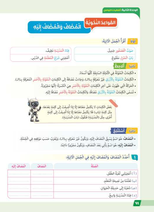 ويأتي شرح المضاف إليه للصف الخامس الابتدائي على النحو التالي: