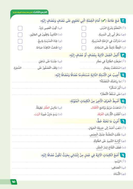 - كتاب الطالب جديد → المضاف: كتاب، المضاف إليه: الطالب.
