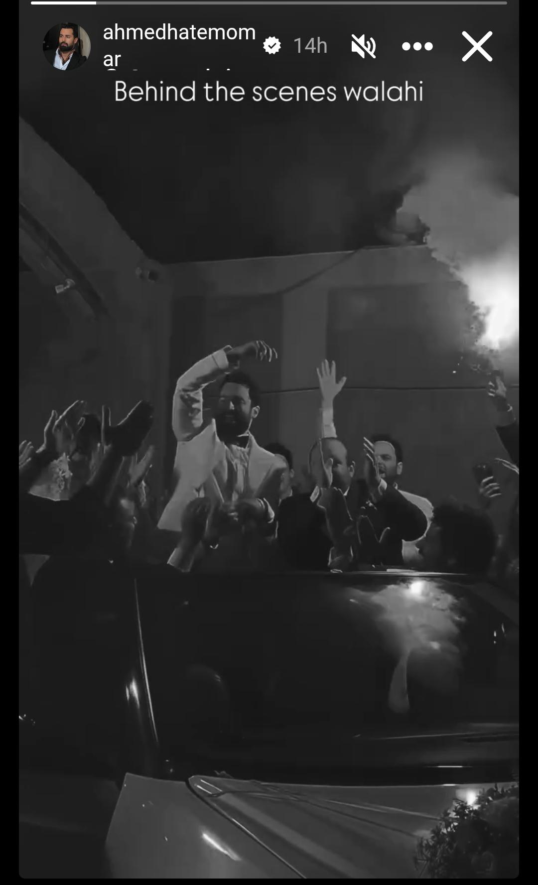 نشر أحمد حاتم فيديو قصيرًا وهو يحتفل بزفافه، ولكن حتى يؤكد أنه من عمل فني، علق عليه قائلًا: "خلف الكواليس واللهي".