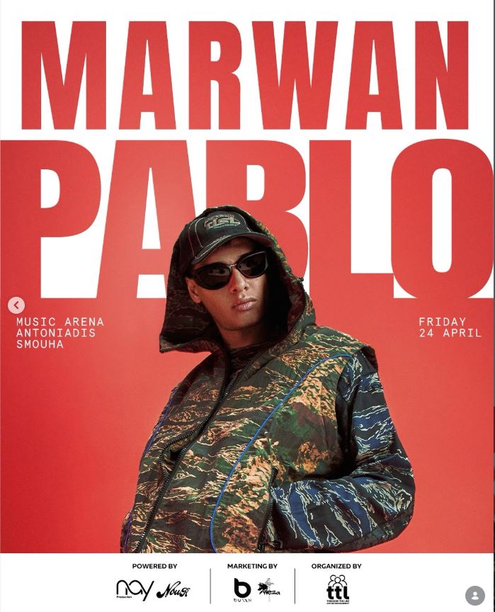 ويستعد الرابر مروان بابلو لإحياء حفل موسيقي جديد يوم 24 أبريل المقبل على مسرح Music Arena داخل حديقة أنطونيادس في الإسكندرية، والتي تُعد من أبرز الساحات المفتوحة المخصصة لاستضافة الفعاليات الغنائية والفنية.