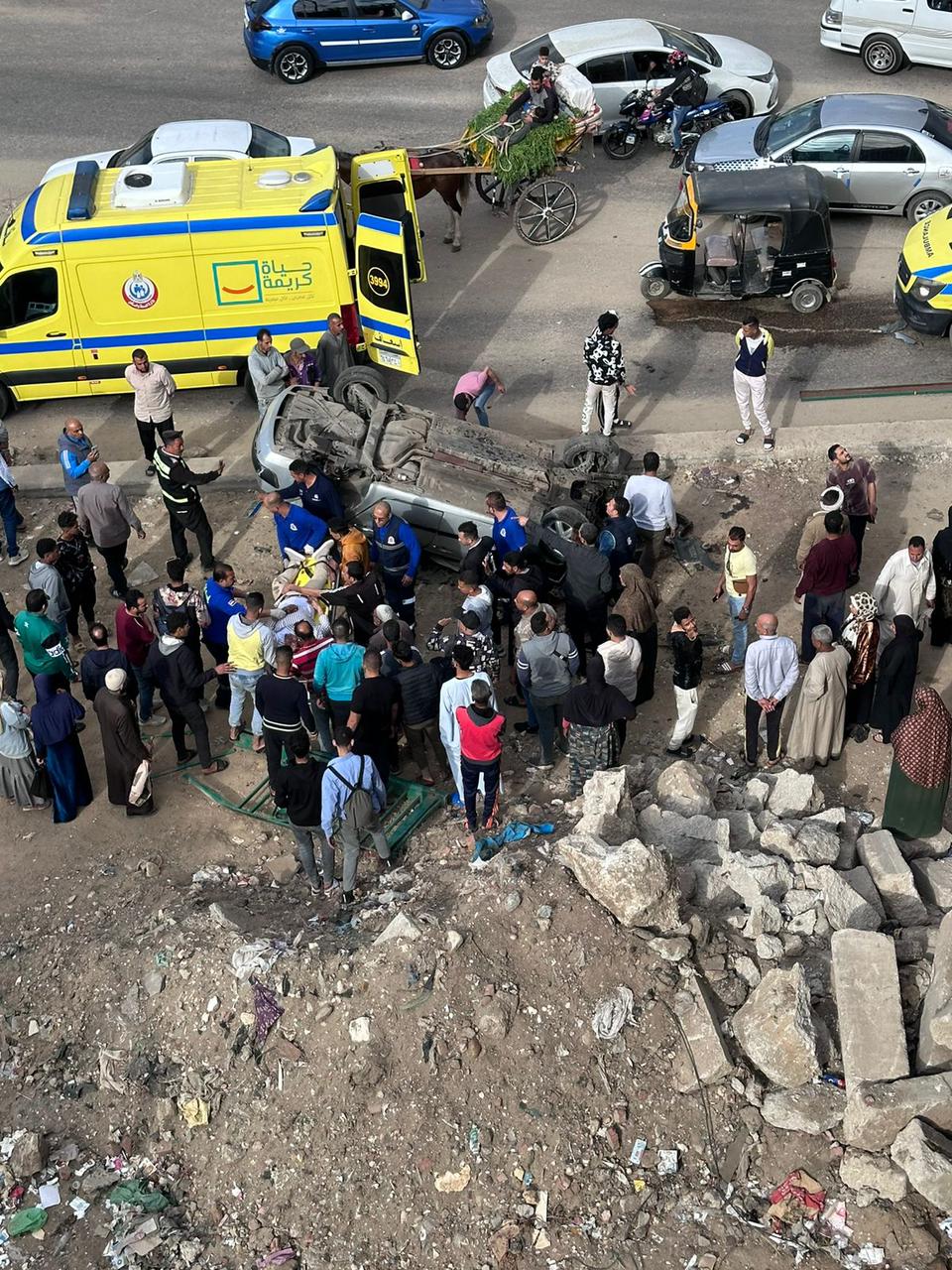 سقوط سيارة من أعلى الطريق الدائري بالجيزة (صور)
