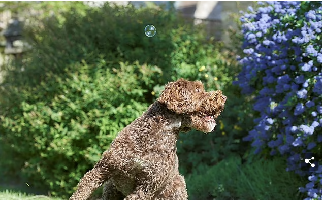 يبدو الكلب سعيدًا وهو يبحث عن الفقاعة الضالة