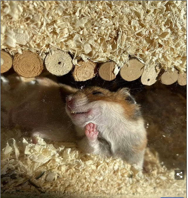 يبدو الهامستر مريحًا ودافئًا وهو يغفو في عشه.